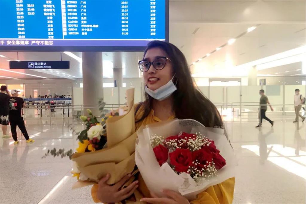 晚上9時許,和平國際醫院外科醫生、來自非洲毛里求斯的蘇瑪到達溫州龍灣國際機場。