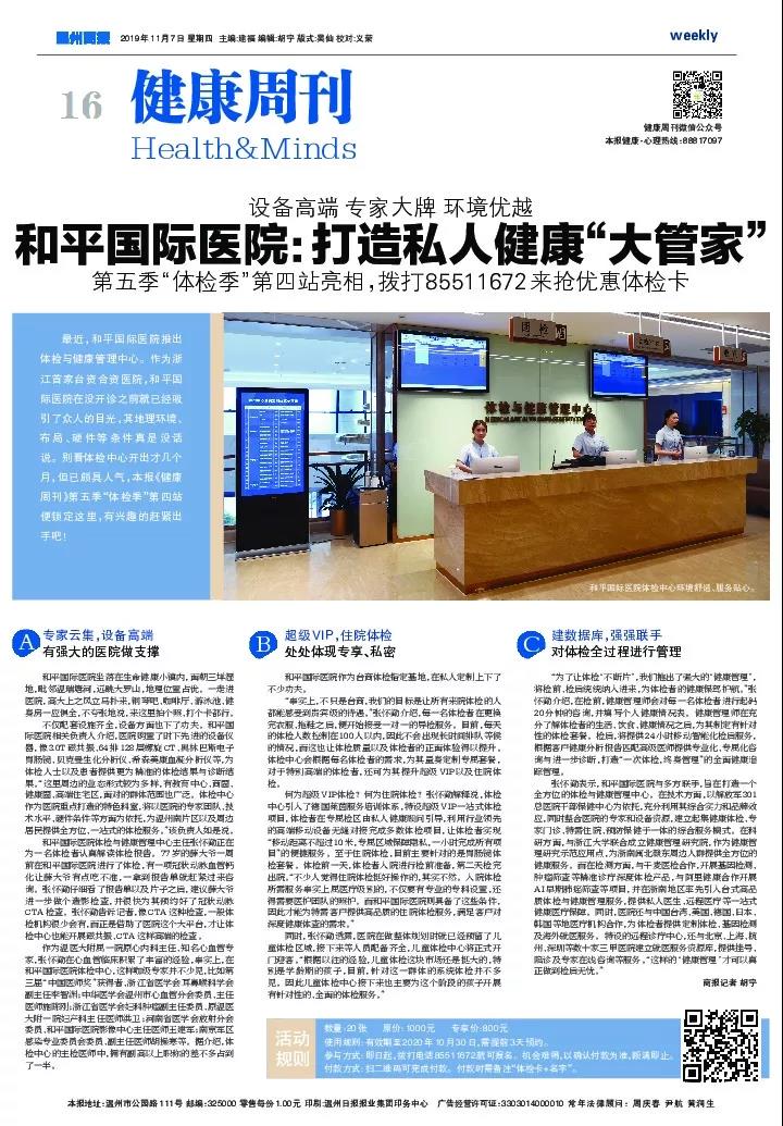 和平國際醫(yī)院作為臺(tái)商體檢指定基地,在私人定制上下了不少功夫。