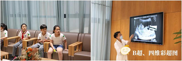 接下來(lái),跟隨周婷的腳步,孩子們要一步步踏入產(chǎn)科這個(gè)神秘地帶咯!觀看B超、四維彩超圖,參觀胎心監(jiān)護(hù)室、嬰兒游泳館……“這是我見(jiàn)過(guò)的最溫馨的產(chǎn)科。”參觀過(guò)程中,一位陪同的家長(zhǎng)忍不住感慨道:“我好想來(lái)這里生二寶!”