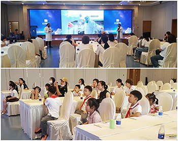 和平國(guó)際醫(yī)院高端婦產(chǎn)中心的周婷醫(yī)生先帶領(lǐng)大家觀看《生命的起源》,并進(jìn)行更通俗易懂的解釋。隨后,現(xiàn)場(chǎng)的一位小朋友害羞地說(shuō):“精子親卵子一口,然后就生出了小baby~”,話(huà)音未落,便逗得現(xiàn)場(chǎng)所有人哈哈大笑。