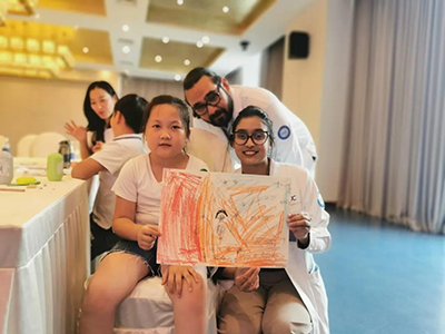 生命是如此可敬、可貴,在感受過(guò)生命孕育的偉大后,和平國(guó)際醫(yī)院的跨國(guó)醫(yī)生,來(lái)自毛里求斯的蘇瑪和來(lái)自巴基斯坦的豪孟德給現(xiàn)場(chǎng)的小朋友分享了發(fā)生在他們身上的抗疫故事。現(xiàn)場(chǎng)互動(dòng)不斷,氣氛高漲,有些小朋友甚至直接和蘇瑪用簡(jiǎn)單的英文進(jìn)行交流。