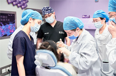 現(xiàn)場(chǎng)為求美者進(jìn)行面部注射
