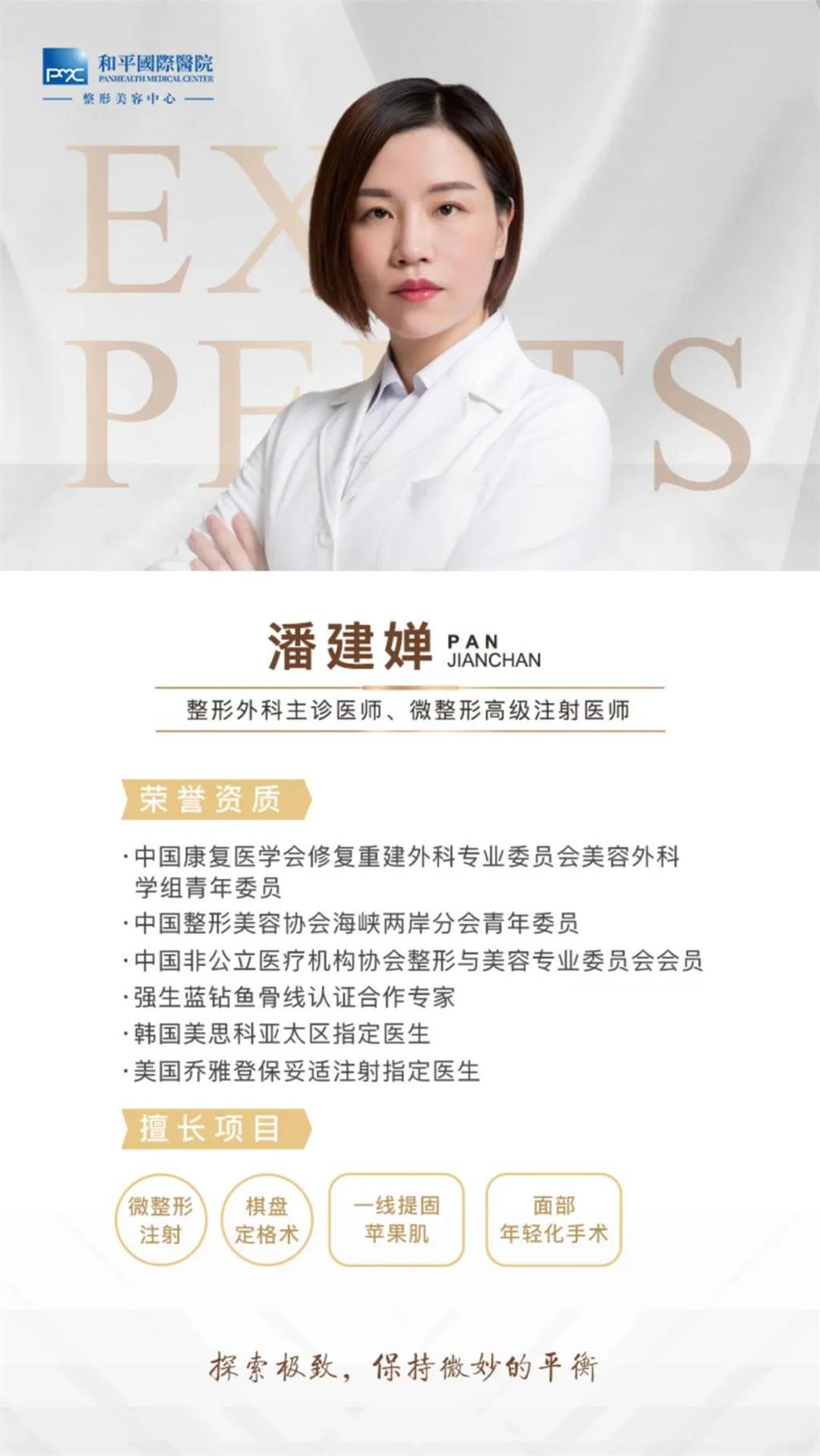 潘建嬋醫(yī)生作為喬雅登、保妥適等指定注射專家,始終堅(jiān)持精煉注射技藝,立足新潮觀念和前沿科技,結(jié)合獨(dú)特的美學(xué)設(shè)計(jì)理念,為廣大求美者定制個(gè)性化塑美方案,帶來(lái)高定的美麗煥變。