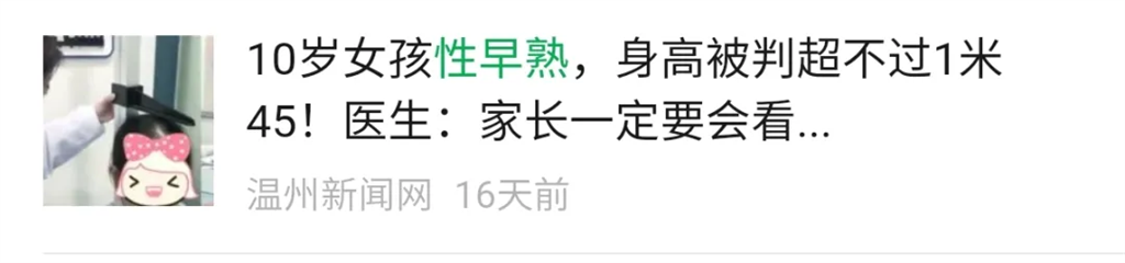 當(dāng)孩子過早地開始發(fā)育時,身體中的性激素會使骨骼成熟加快,使骨骺端提前閉合,骨齡持續(xù)性超前。使得孩子在后期的生長發(fā)育過程中身高增長緩慢,至成年時期大多矮于常人。