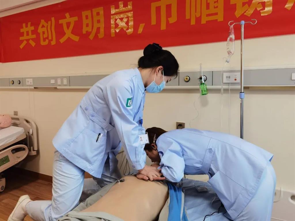 本次應急演練理論聯系實際,以情景模擬的方式把病人評估、吸氧、口頭醫囑執行、給藥、胸外按壓、除顫等多項預案從書本上呈現在現實中。各科室組成的護理團隊,按照預案程序分工合作,針對設定的場景和發生的事件進行應急能力比賽。