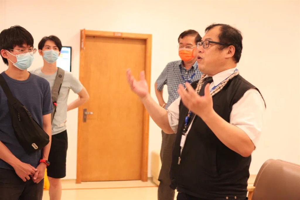 在醫(yī)院首席醫(yī)療品質(zhì)官應(yīng)純哲(左一)以及院長(zhǎng)助理林進(jìn)聰(左二)的帶領(lǐng)下同學(xué)們參觀了體檢與健康管理中心、整形美容中心以及皮膚美容中心等科室。兩人作為同樣來(lái)自臺(tái)灣的前輩,他們用方言與同學(xué)們聊起了“家長(zhǎng)里短”,更是向同學(xué)們述說(shuō)了在院工作的點(diǎn)點(diǎn)滴滴。 參訪過(guò)程中同學(xué)們表示這里給他們一種仿佛回到了臺(tái)灣醫(yī)院的錯(cuò)覺(jué)。當(dāng)同學(xué)們參訪整形美容中心以及皮膚美容中心時(shí)被墻上掛著的醫(yī)師簡(jiǎn)介所吸引,雄厚的師資力量讓同學(xué)們久久駐足……