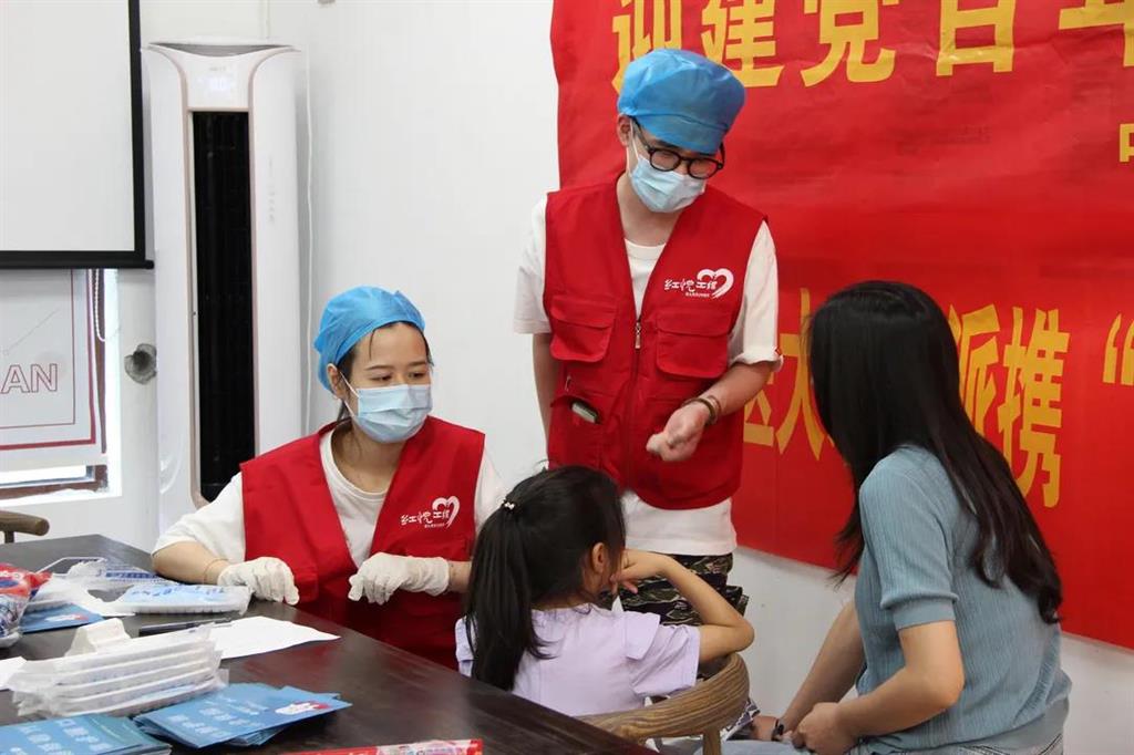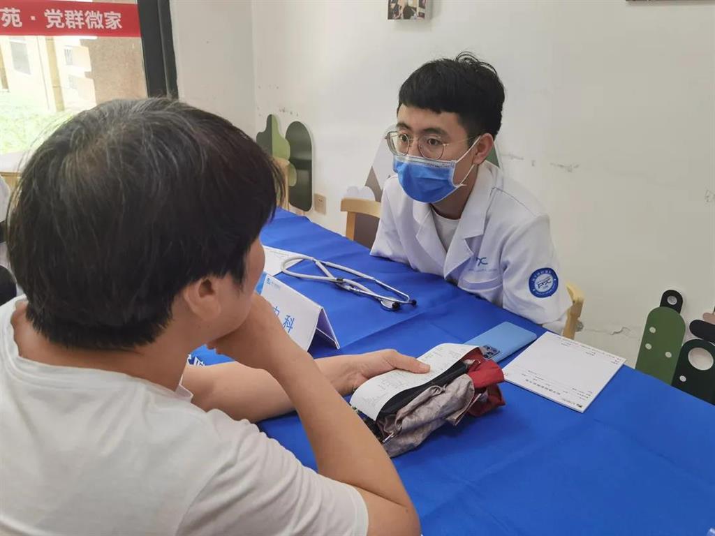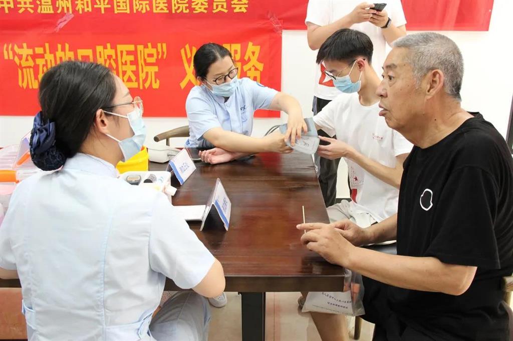 7月7日上午九點半,氣溫33℃,沒有一點風,和平國際醫院“紅悅工程”攜手南白象街道南垟社區服務中心、2021年溫醫大口腔醫學院本碩博“樂伢派”暑期社會實踐團、溫州商學院“壹點愛”暑期社會實踐隊,來到四季原著小區,為小區居民帶來了量血壓、測血糖、骨密度檢測、口腔檢查、兒童生長發育等義診服務。