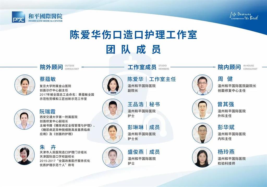和平國際醫院陳愛華傷口造口護理工作室是由國際造口治療師陳愛華為主導,聯合國內外知名醫護專家與和平國際醫院優秀醫護團隊組成傷口造口診療護理專科組織。