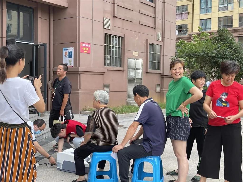 義診團隊剛抵達不久,小區的業主們便聞訊而來,他(她)們或兩兩結伴,或三五成群,帶著孩子一起前來問診檢查。