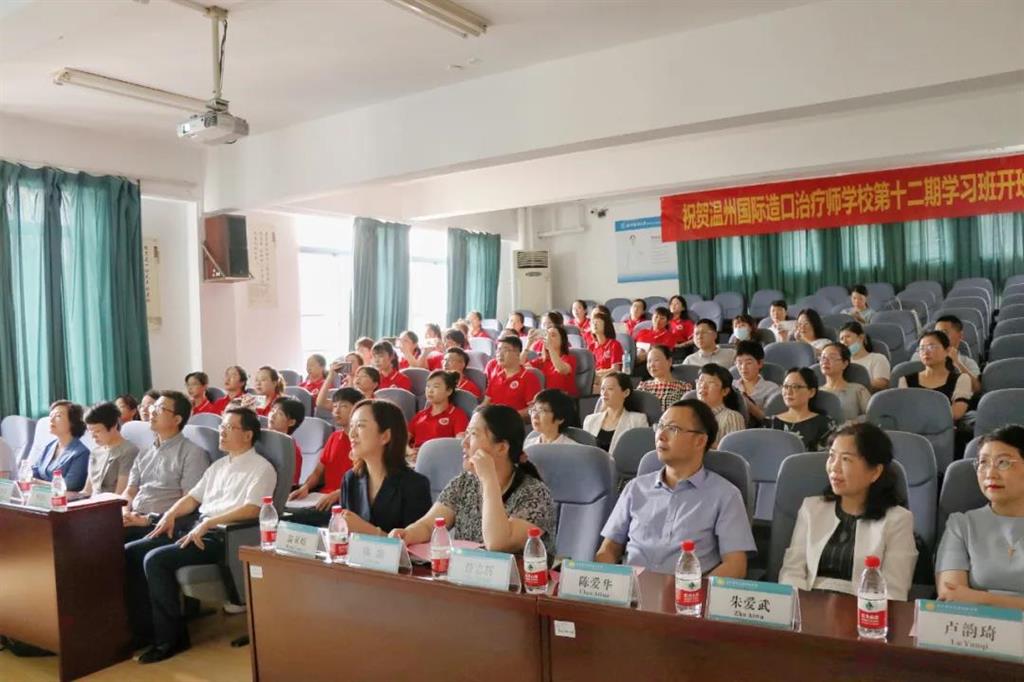 國際造口治療師協會(WCET)教育委員會主席翁亞娟、委員陳劼、溫州醫科大學護理學院黨委書記李旭東、溫州醫科大學教育學院院長王世澤、溫州和平國際醫院院長薛志輝、溫州和平國際醫院副院長陳愛華、溫州醫科大學附屬第二醫院護理部主任王愛霞、溫州醫科大學附屬第二醫院護理部副主任李育梅、溫州醫科大學附屬第一醫院護理部副主任陳瑜、溫州市中心醫院護理部主任朱愛武、溫州市中醫院護理部主任盧韻琦及七位帶教老師出席了開學典禮。