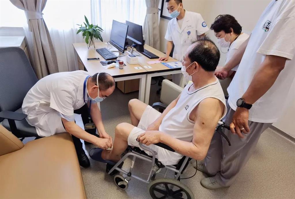 患者陳先生因左小腿感染傷口產生膿性分泌物,在家人的陪同下特意從樂清趕到和平國際醫院就診。