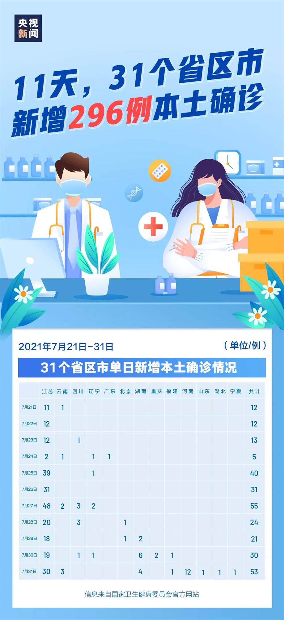 近日,全國多地發生疫情。僅僅7月21日至7月31日的11天內,31個省區市(含兵團)就已新增296例本土確診病例。