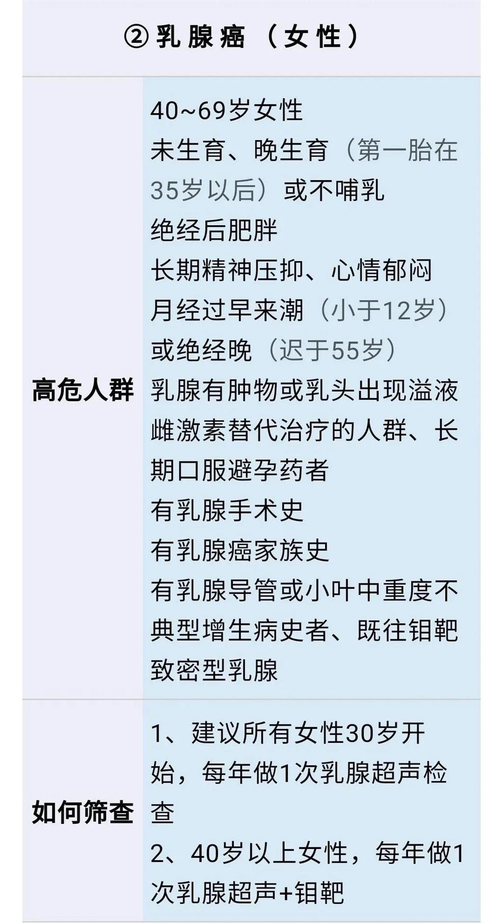 癌癥發病的第一高危因素是“年齡”,所以建議:①根據年齡 ②參照每種癌癥的高危因素,來確定自己需要篩查的項目。