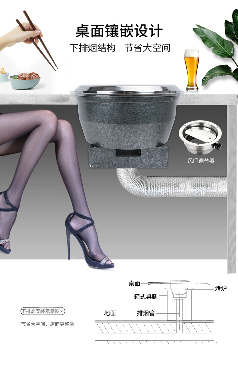 方形碳烤爐下排煙